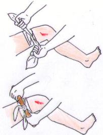 ※結び目に棒などを置き、回転させて出血が止まるまでゆっくり締める。